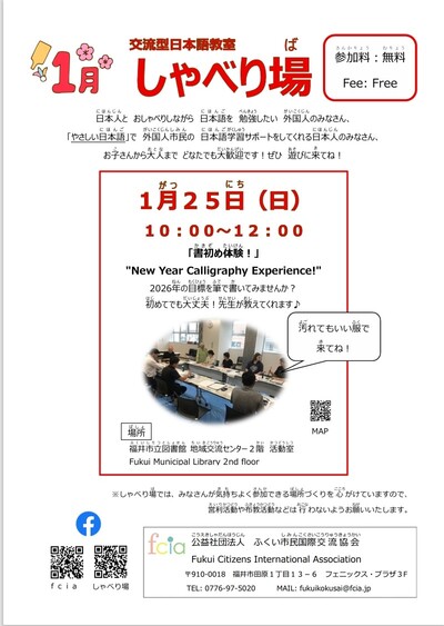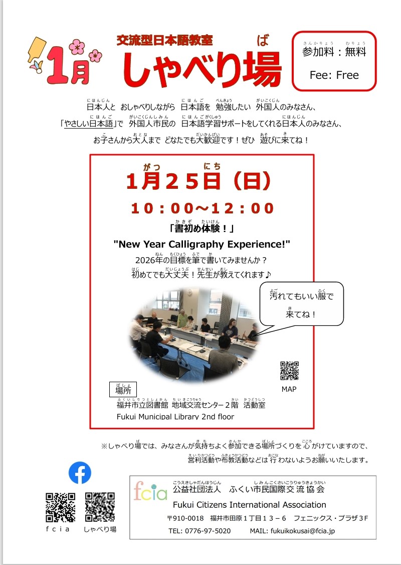 【1月】交流型日本語教室「しゃべり場」ボランティア募集!
