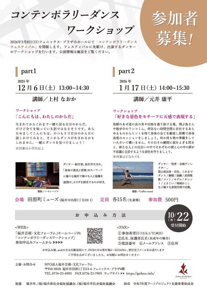 コンテンポラリーダンス フェスティバル in ふくい開催! 事前ワークショップ参加者募集!