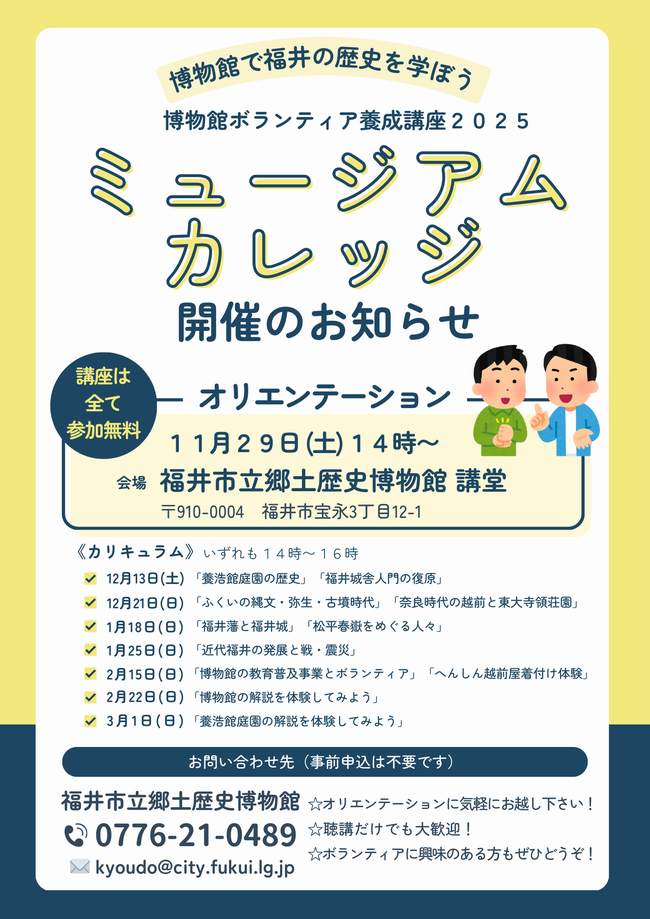 博物館ボランティア養成講座2025「ミュージアムカレッジ」開催!
