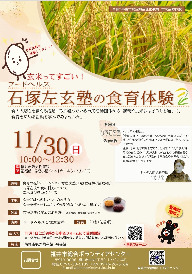 【定員に達しました】玄米ってすごい!フードヘルス石塚左玄塾の食育体験 参加者募集!