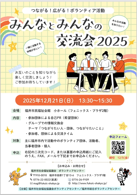 【締切12月5日】 みんなとみんなの交流会2025! 〜つながる!広がる!ボランティア活動〜 福井市