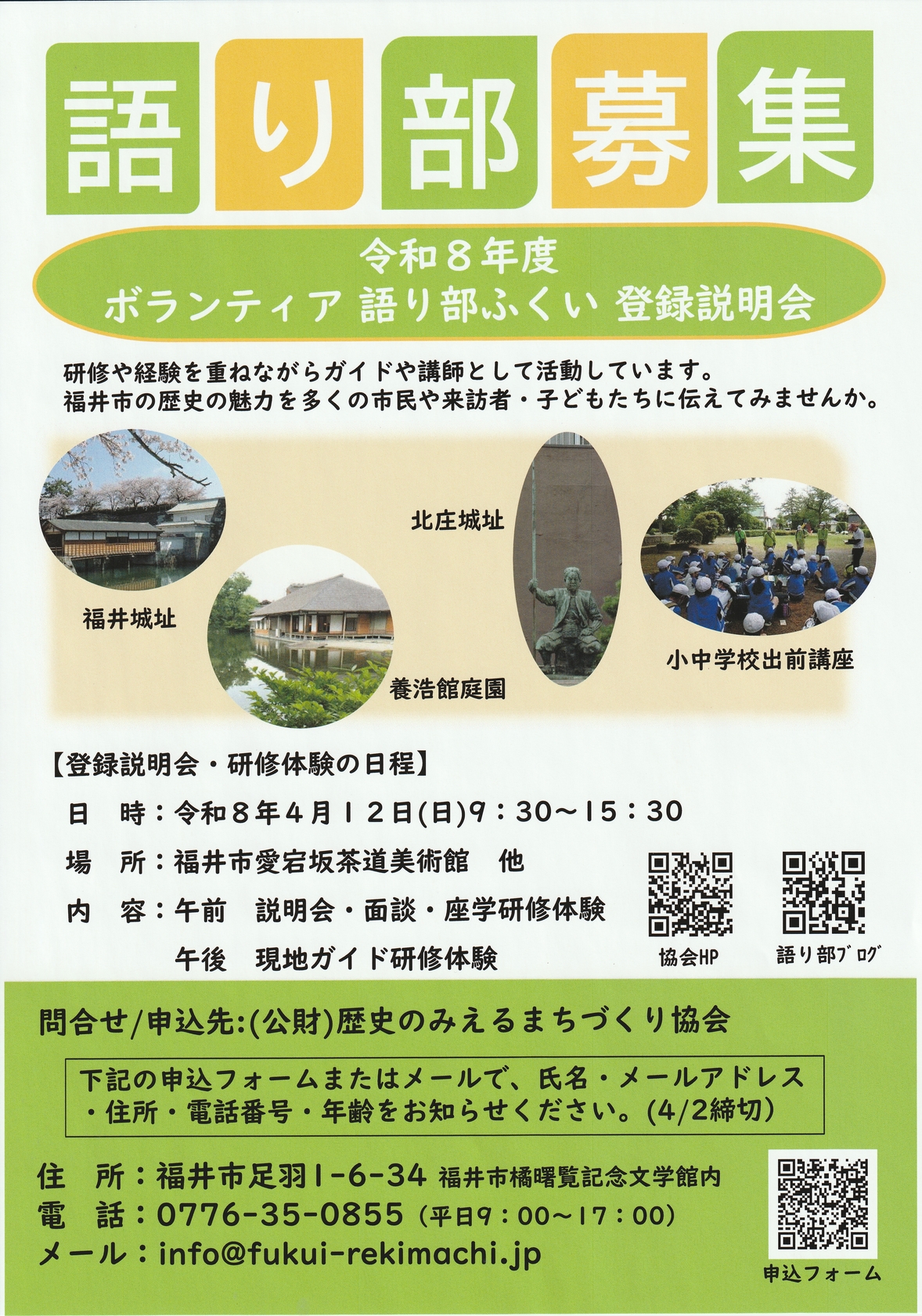 | 団体名 | (公財)歴史のみえるまちづくり協会 ボランティア語り部ふくい |